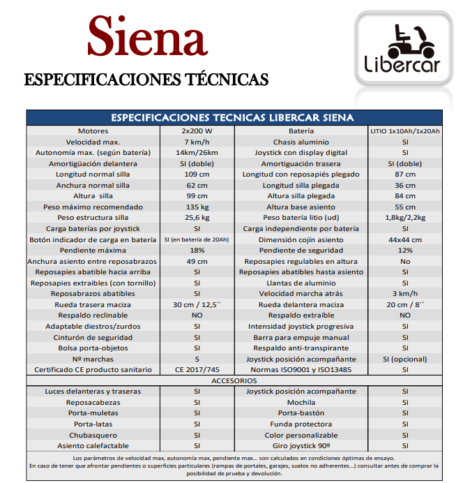 Silla de ruedas eléctrica plegable Siena10 Libercar